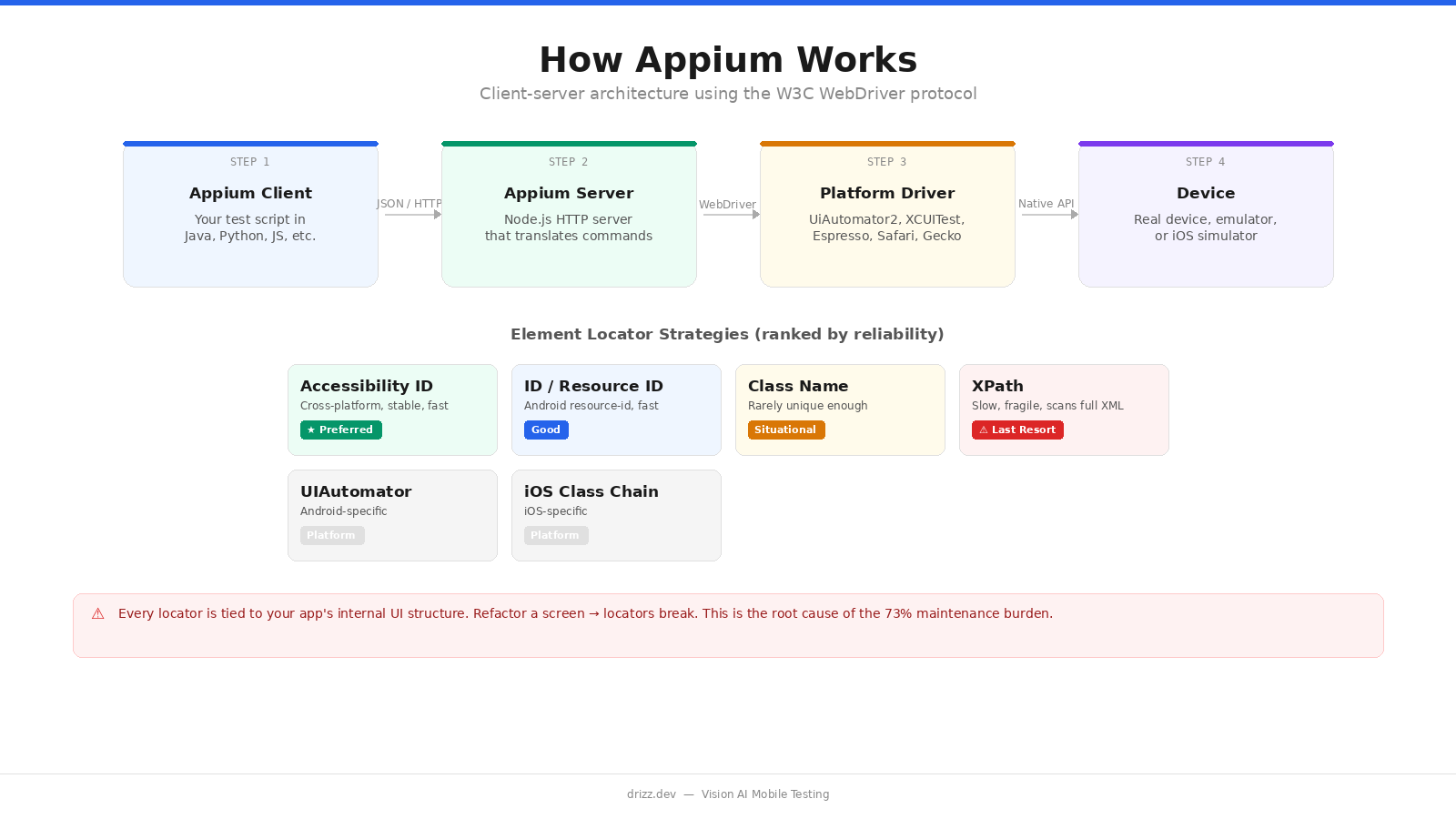 Understanding Appium's architecture is critical to using it effectively and to understanding why it breaks.